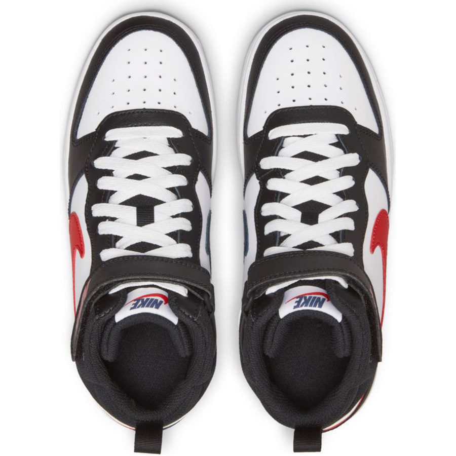 Buty Nike Court Borough Mid 2 BG DO5889-161 jsou lifestyle sneakersy pro starší děti. Klasický design s vysokým límcem zajišťuje stabilitu během každodenních aktivit. Ideální do města a do školy, v univerzální barvě bílé/bílé/černé/University Red.