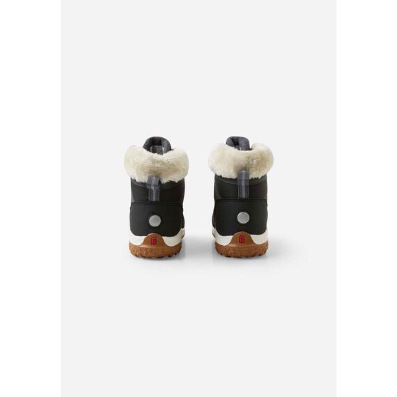 V velikostech do 24 chybí podpatky (zero heel), což činí boty vhodné pro první roky chůze malých dětí. Speciální, bezpečný systém šněrování Reima zajišťuje dobré přizpůsobení, a reflexní prvky zlepšují viditelnost a bezpečnost po setmění. Produkt je bez fluorovaných uhlovodíků a 100% veganský.