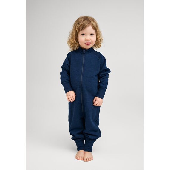 Kombinéza je vyrobena z vysoce kvalitní vlny, která přirozeně reguluje tělesnou teplotu a odvádí vlhkost, což se projevuje na suchém a příjemném mikroklimatu u pokožky. Použití elastických vláken ve struktuře pleteniny zajišťuje volnost pohybu a dobré přizpůsobení postavě dítěte. Konstrukce zohledňuje detaily zvyšující komfort používání během každodenních aktivit — ergonomické střihy, elastické manžety a stabilní švy, které zvyšují trvanlivost oděvu.
