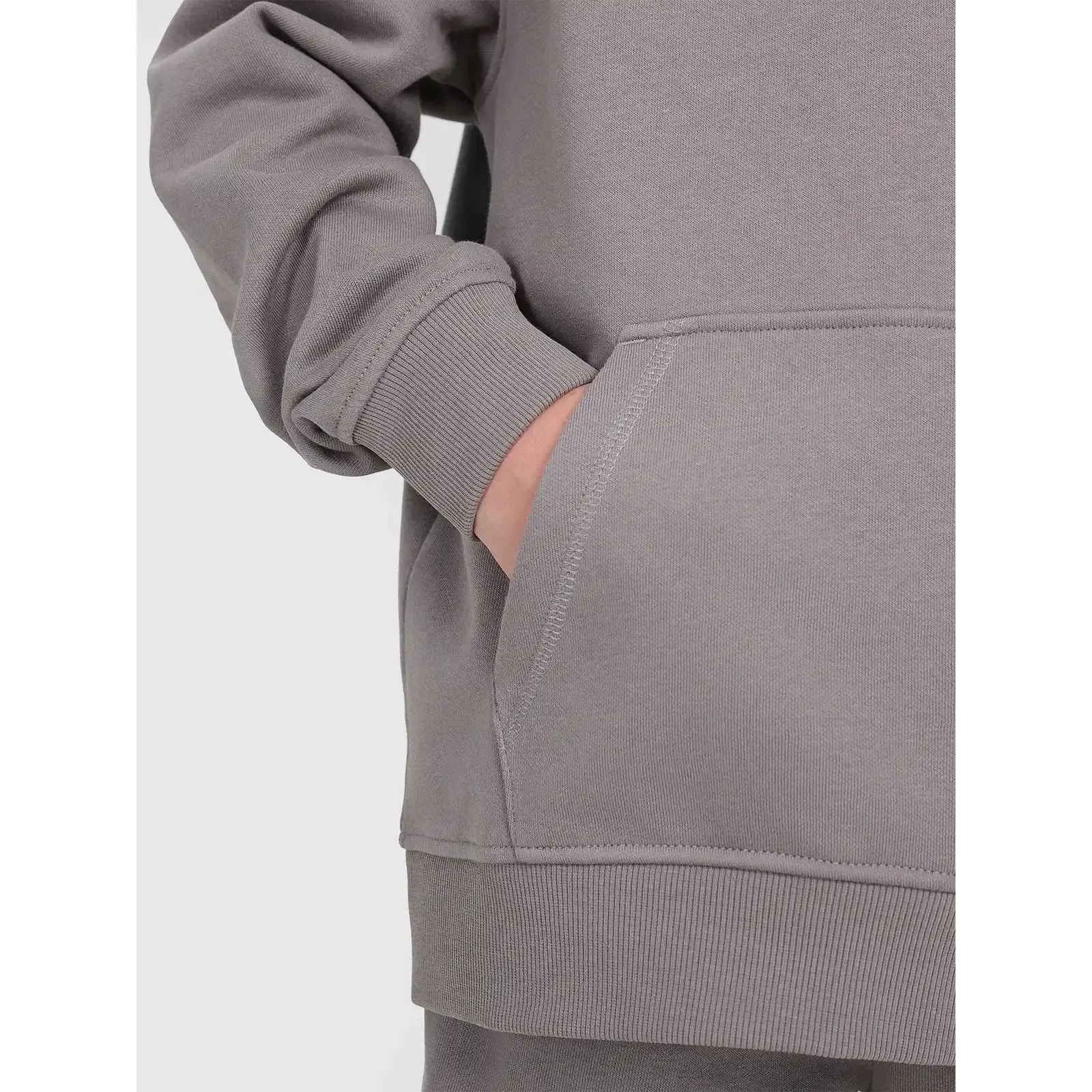 Mikina je vyrobena z měkkého, prodyšného materiálu s příjemnou na dotek strukturou, s jemně kartáčovanou vrstvou uvnitř pro dodateční tepelný komfort. Střih zajišťuje volnost pohybu, a elastické manžety na rukávech a dole udržují tvar na místě během aktivity. Konstrukce zahrnuje praktickou kapuci s možností regulace a prostornou klokaní kapsu, která chrání ruce a pojme drobnosti. Ploché švy minimalizují riziko odřenin a trvanlivé úpravy zvyšují odolnost vůči každodennímu používání a častému praní.