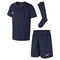 Komplet Nike pro děti se osvědčí během aktivit. Technologie Dri-FIT zajišťuje pocit sucha a pohodlí. Elastický pas v šortkách je podšitý síťovinou, což zajišťuje prodyšnost. Síťovina na zadní straně trička zvyšuje ventilaci. Standardní střih poskytuje plnou volnost pohybů. V sadě se nachází tričko, šortky a podkolenky.
