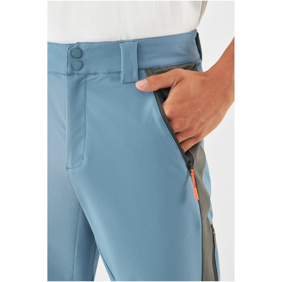 Kalhoty kombinují odolnost s lehkostí používání. Elastický materiál zajišťuje volnost pohybů, a struktura tkaniny zlepšuje ventilaci a odvádí vlhkost. Dodatečná impregnace omezuje absorpci vody, takže krátkodobý déšť není překážkou. V kritických místech byly použity výztuhy zvyšující odolnost proti oděru, a ergonomické švy a profilovaná kolena zvyšují komfort při dynamickém pohybu. Praktické kapsy se zipy pojmou nezbytné drobnosti, a regulace v pase umožňuje přizpůsobit kalhoty individuálním potřebám.