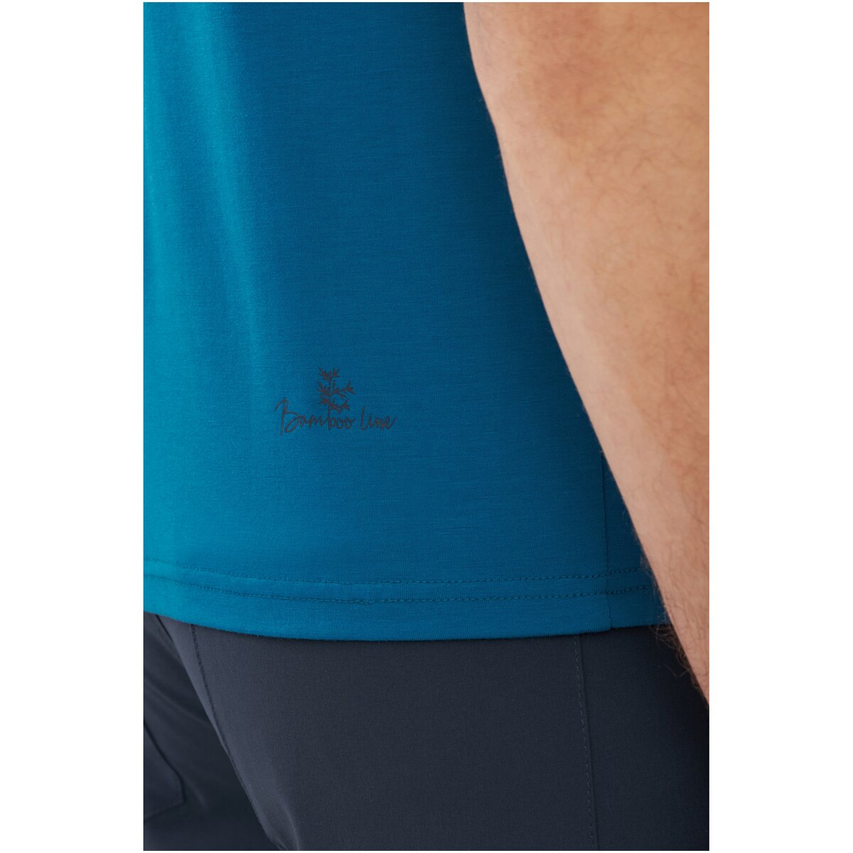 Tričko bylo vyrobeno z tkaniny s vysokým obsahem bambusových vláken, která přirozeně odvádí vlhkost a zajišťuje měkkost na pokožce. Materiál se vyznačuje vysokou prodyšností a rychlým schnutím, což minimalizuje nepohodlí během intenzivního úsilí. Jemné antibakteriální vlastnosti bambusových vláken omezují vznik nepříjemných zápachů, a malý podíl elastanu zaručuje pružnost a přizpůsobení postavě bez omezení pohybu.