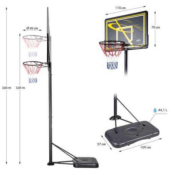 - Výška kroužku: 2,45 m – 3,05 m