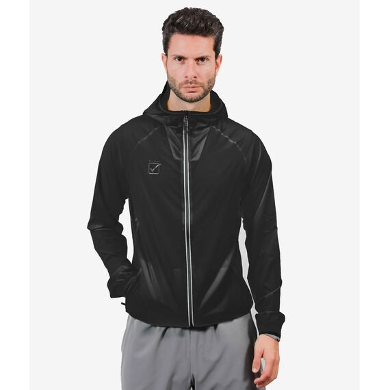 Bunda je vyrobena z ortalionového materiálu, který spojuje voděodolnou vrstvu s komfortem nošení. Lehká konstrukce umožňuje volnost pohybu a zároveň vytváří bariéru proti chladnému větru a přeháňce. Model je vybaven plným zipem, který usnadňuje oblékání a svlékání, a kapucí, kterou lze přizpůsobit povětrnostním podmínkám. Elastické manžety a spodní část bundy zabraňují pronikání chladného vzduchu, a praktické kapsy poskytují místo na drobnosti potřebné během tréninku. Další reflexní prvky zvyšují viditelnost za tmy, čímž zvyšují bezpečnost uživatele.