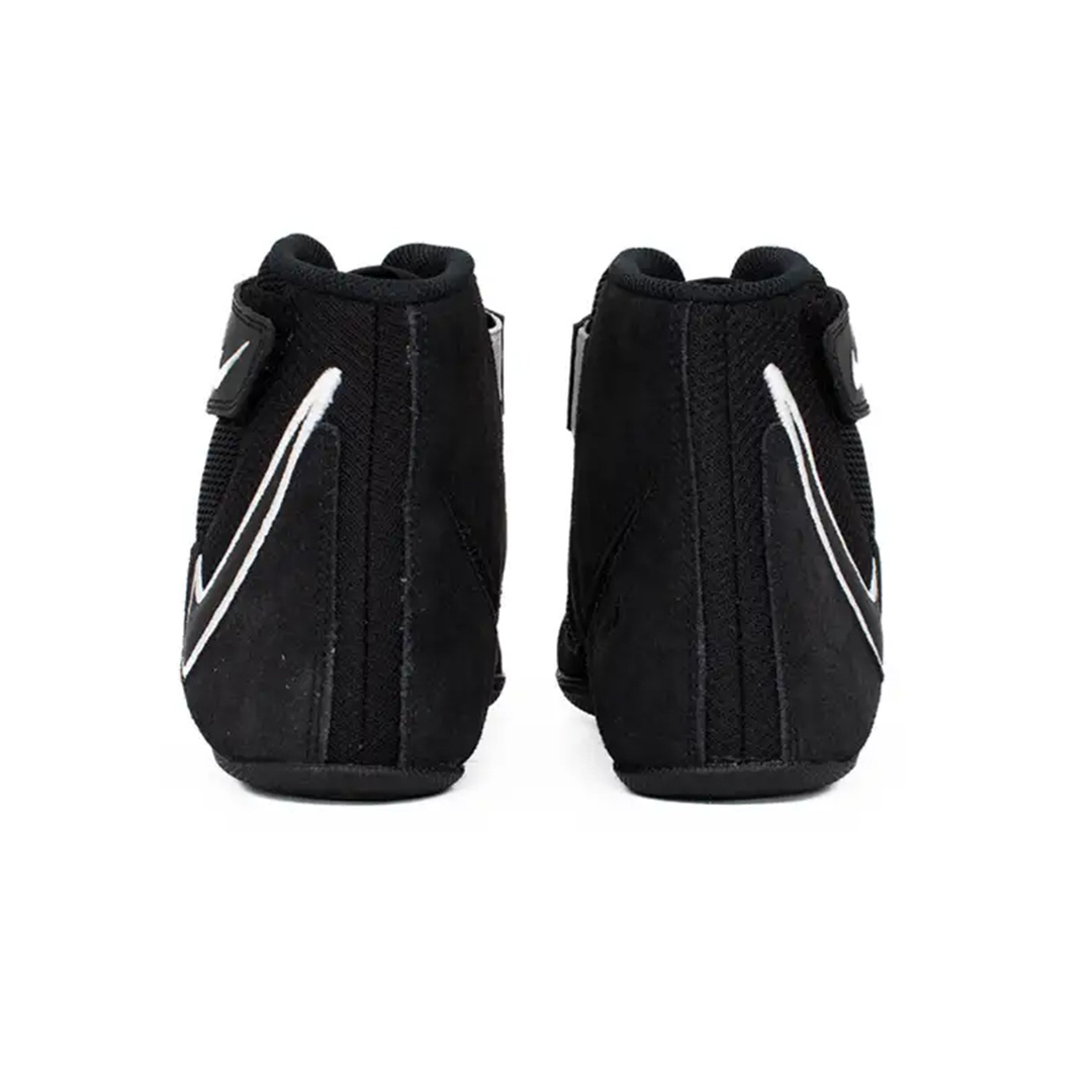 Systém šněrování a profilovaný kotníkový límec stabilizují nohu, minimalizují riziko posunutí uvnitř boty. Vložky snižující tření a bezešvé spoje zvyšují komfort během dlouhodobého používání, a anatomická vložka se přizpůsobuje tvaru nohy, zvyšující pohodlí a kontrolu během zápasnických akcí.