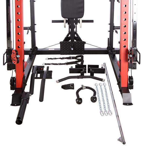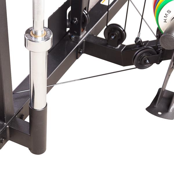 - Vedení s bezpečnostním mechanismem: Zajišťuje stabilitu při provádění těžkých cvičení.