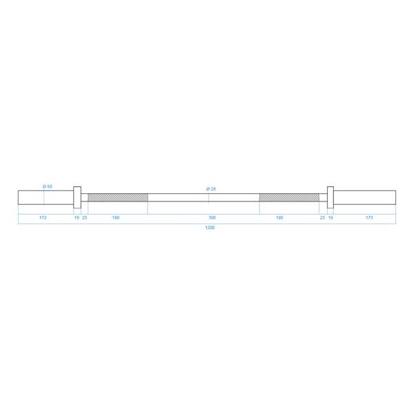 - Hřídel není určena pro komerční použití, avšak její solidní konstrukce ji činí ideální pro intenzivní domácí tréninky.