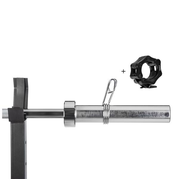 V sadě se nacházejí dvě pružinové zacisky a dva čelní zacisky ZG1000B, které zajišťují stabilitu a bezpečnost během cvičení. Díky pečlivému vroubkování úchopové části gryf zajišťuje jistý a pohodlný úchop i během intenzivních tréninků. Maximální zatížení 200 kilogramů umožňuje různé silové cvičení.