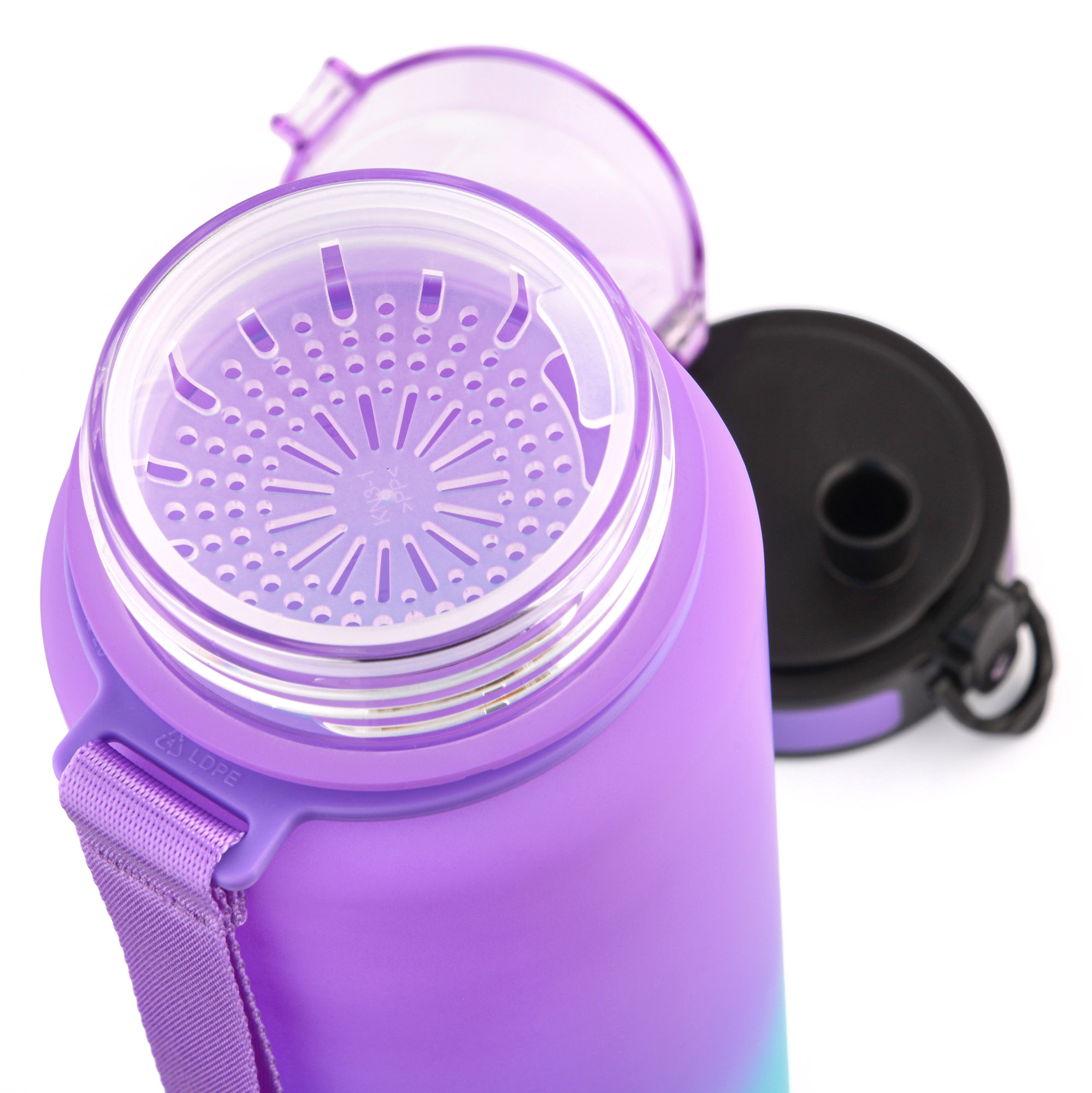 Láhev je vyrobena z materiálů schválených pro kontakt s potravinami, což zaručuje bezpečnost používání. Ergonomický tvar usnadňuje pevný úchop i během intenzivního tréninku, a jasná míra na stěně umožňuje kontrolovat množství vypité tekutiny. Široké hrdlo usnadňuje dolévání, plnění kostkami ledu a důkladné mytí. Uzávěr s těsněním zajišťuje těsnost, a pohodlný náustek umožňuje rychlé pití bez rozlití. Produkt je odolný vůči každodennímu používání a snadno se udržuje v čistotě.