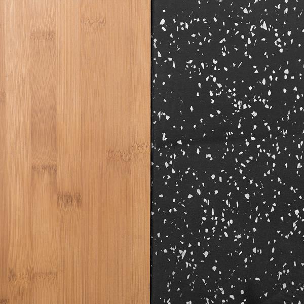 - Estetický vzhled: Dřevěná vrstva dodává podstavci elegantní vzhled, který se hodí do každého interiéru, jak doma, tak v profesionální posilovně.