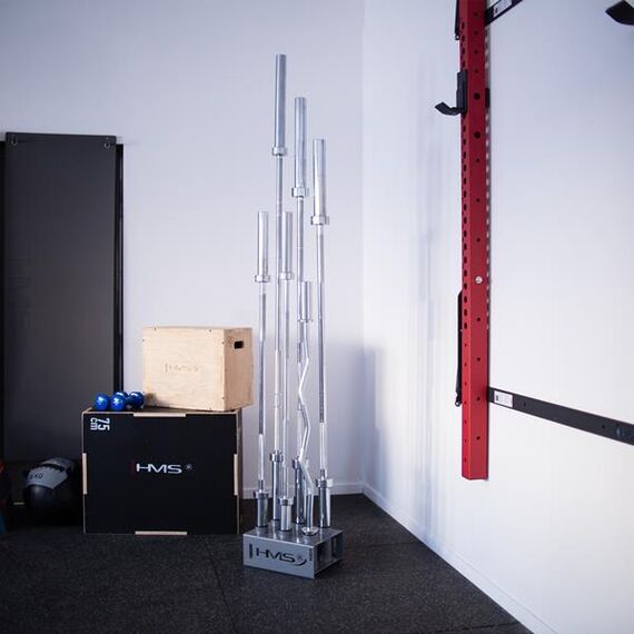 STR34 je stojan na olympijské tyče, navržený společností HMS, který nabízí mnoho praktických výhod a je ideálním řešením pro ukládání tyčí ve tréninkovém prostoru.