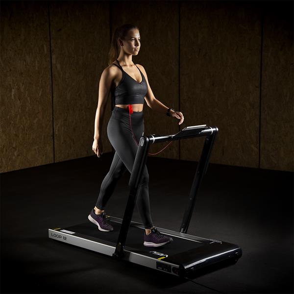 Běžecký pás LOOP12 je moderní a funkční řešení pro osoby, které si cení fyzické aktivity v pohodlí domova. Díky vysokému komfortu používání, pokročilé technologii a možnosti připojení k mobilní aplikaci poskytuje tento běžecký pás nejen efektivní trénink, ale také motivaci k pravidelnému cvičení a sledování pokroků. Je ideální volbou pro každého, kdo chce pečovat o své zdraví a kondici pohodlným a bezpečným způsobem.