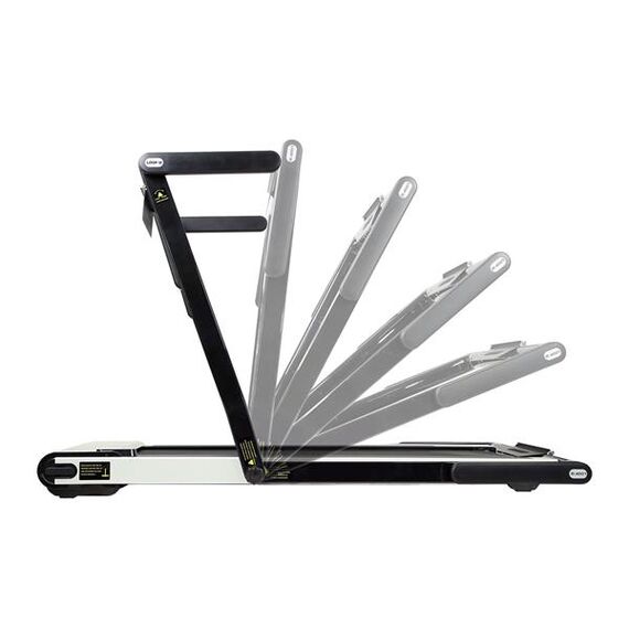 - Díky skládací rukojeti běžecký pás zabírá málo místa, což z něj činí ideální volbu pro domácí použití. Navíc, namontovaná transportní kolečka usnadňují přesun běžeckého pásu bez nutnosti velkého úsilí.