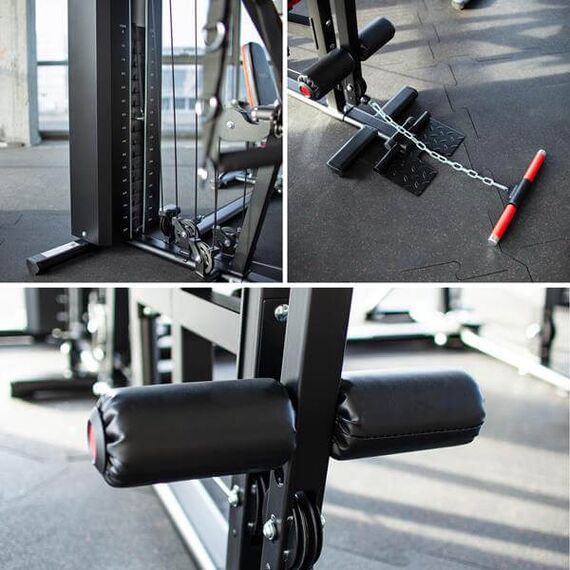 Modlitebník, leg press, rozpažky, ramena pro tlak a speciální úchyty pro izolované cviky – to vše dělá z TYTAN 17 kompletní tréninkové centrum. Můžete trénovat hrudník, záda, ramena, hýždě, nohy, biceps a triceps bez změny zařízení.