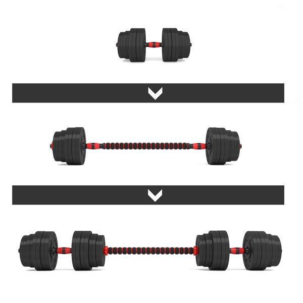 - Činky a činka: Sada se skládá ze dvou krátkých hřídelů, které lze spojit pomocí speciálního spojení, čímž vznikne činka. Díky tomu mohou uživatelé provádět jak cvičení se dvěma oddělenými činkami, tak s plnohodnotnou činkou, což zvyšuje flexibilitu tréninku.
