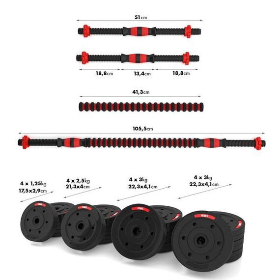 Činka SGP40 HMS je spolehlivá a všestranná sada, která umožňuje provádění různorodých silových cvičení v domácích podmínkách. Díky možnosti spojení dvou krátkých hřídelů mohou uživatelé rychle přeměnit činky na činku, což výrazně zvyšuje rozsah tréninkových možností.
