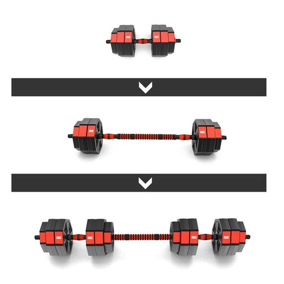 - Snadná přeměna: Díky prodloužení lze dvě krátké tyče spojit v jednu dlouhou, což umožňuje provádění cvičení, která nejsou dostupná pouze s činkami.