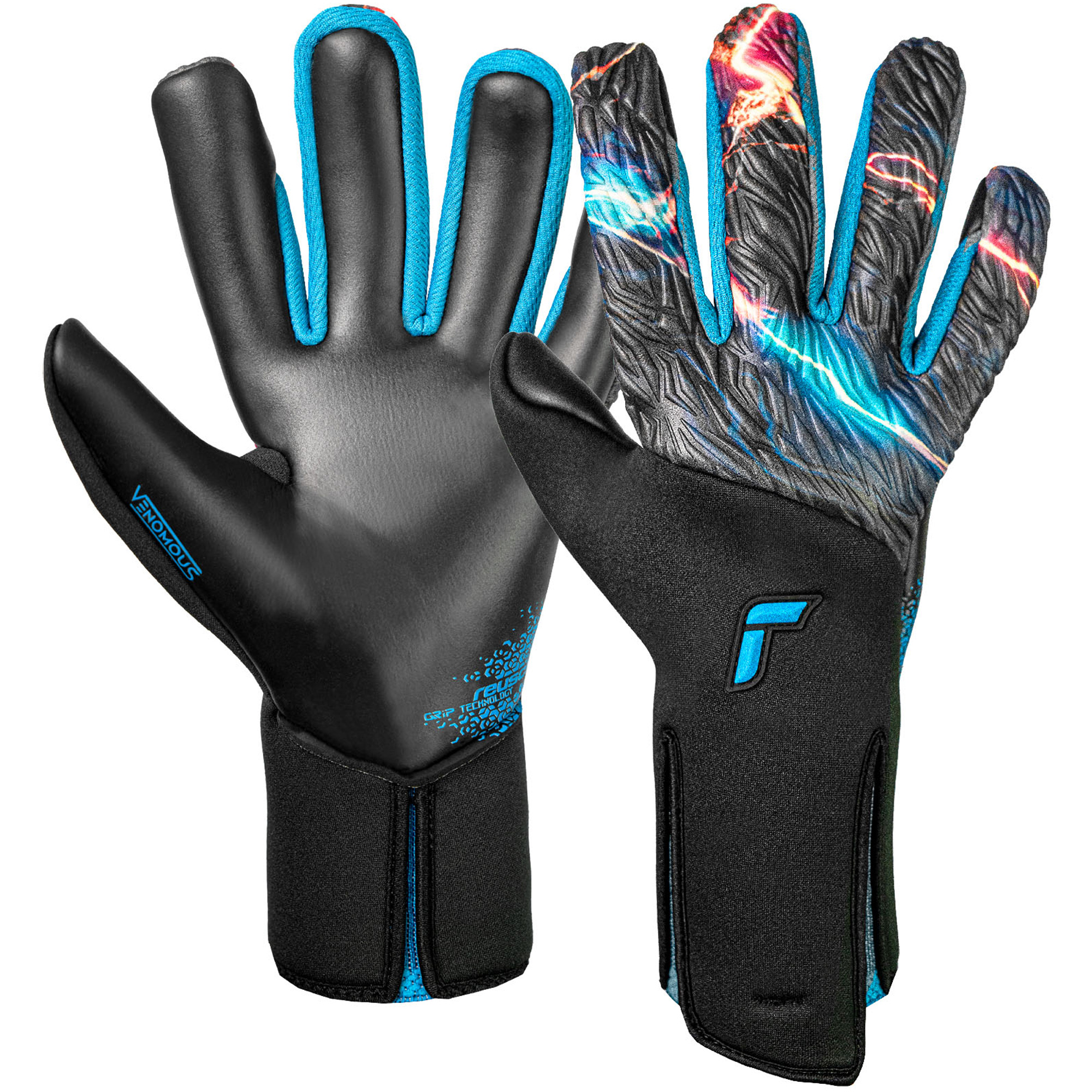 Pěna Reusch Grip Gold X je latex nejvyšší třídy, který je známý svými vynikajícími schopnostmi úchopu míče. V modelu Venomous byl latex prodloužen až do zóny úderu, což zvyšuje efektivitu zásahů brankáře. Střih Evolution Negative Cut zajišťuje přesné přizpůsobení tvaru dlaně, minimalizující mrtvé prostory. Prodyšná tkanina na hřbetu udržuje proudění ventilace, a páska Adaptive Flex-Closure zůstává na místě, zajišťující zároveň svobodu pohybů. Rukavice se osvědčují jak při trénincích, tak v zápasech na nejvyšší úrovni.