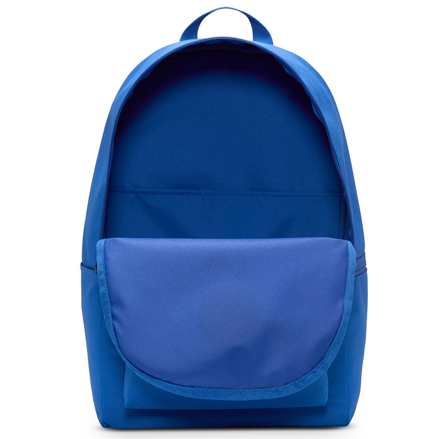 Plecak Nike Chelsea FC Heritage to praktické řešení pro fanoušky a sportovní nadšence. O pojemnosti 25L pojme tréninkové vybavení, laptop a každodenní věci. V barvě Game Royal/White s motivy Chelsea FC se hodí do města i na stadion.