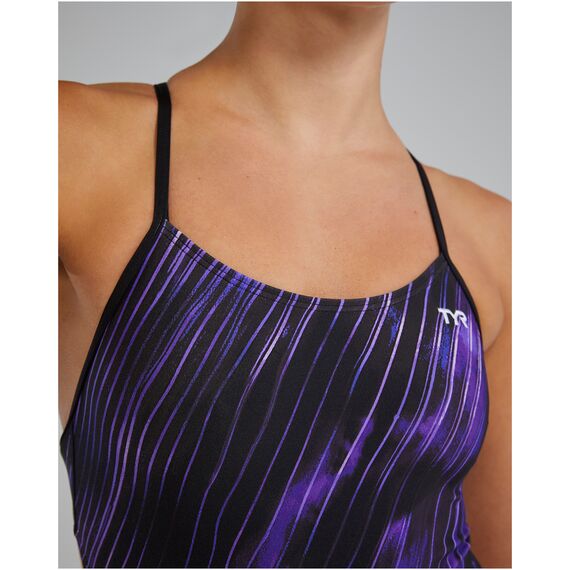 Technologie Durafast Elite® založená na směsi 94% polyesteru a 6% spandexu zachovává barvy a vlastnosti i po dlouhodobém kontaktu s bazénovou vodou. Střih s nízkým výstřihem, tenkými ramínky a hlubokým vykrojením na zádech optimalizuje hydrodynamiku, ideální pro plavecké tréninky a vodní rekreaci.Okem experta
