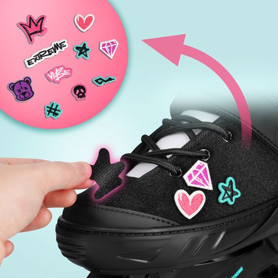 Přiložená sada nášivek umožňuje rychlou změnu vzhledu bruslí v závislosti na náladě nebo stylu jízdy. Dále konstrukce založená na suchých zipách umožňuje používat také jiné, kompatibilní nášivky, díky čemuž si uživatel může sám vytvářet vlastní vizuální varianty.