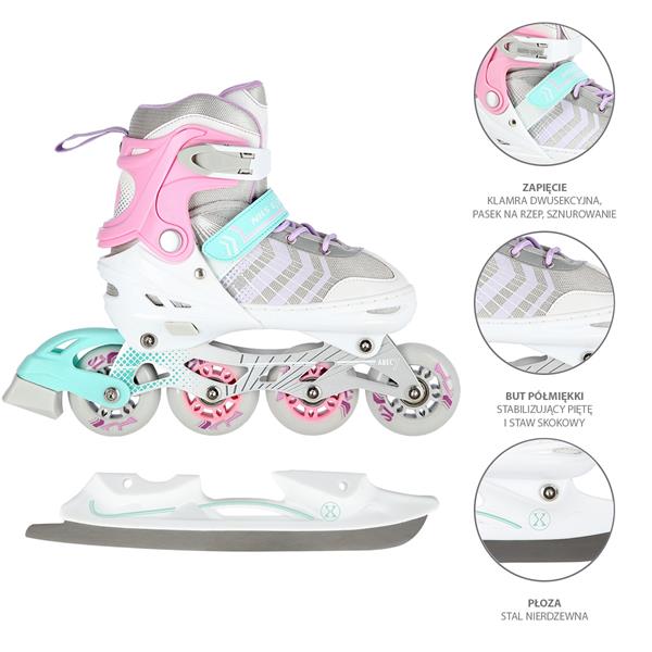 NH18192 Set Nils Extreme je jedinečný produkt navržený pro nadšence jízdy, který nabízí čtyři možnosti konfigurace: brusle, inline brusle, koloběžky a rolko-koloběžky. Díky tomuto modelu lze plně využít výhody různých sportovních disciplín.