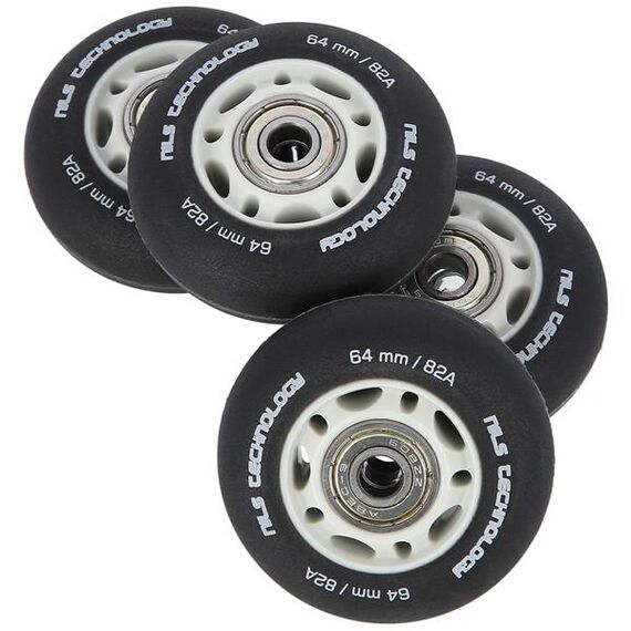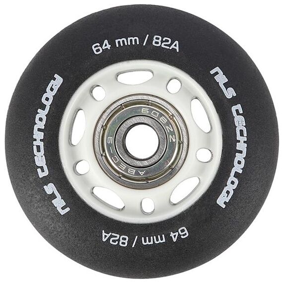Kolečko PU ČERNÉ MATNÉ NILS EXTREME je vyrobeno z polyuretanu. Nejvýznamnějšími parametry koleček jsou tvrdost a průměr. Tvrdost koleček rozhoduje jak o komfortu jízdy, tak o přilnavosti k povrchu. Kolečko PU-82A zajišťuje dobrou amortizaci a vynikající adaptaci na jakýkoli povrch. Průměr koleček má přímý vliv na rychlost jízdy. Kolečko s větším průměrem umožňuje dosahovat vyšších rychlostí, avšak nezaručuje takovou manévrovatelnost jako kolečko s menším průměrem. Ložisko ABEC 9, vyrobené z vysoce kvalitní uhlíkové oceli, které zajišťuje vynikající tvrdost a odolnost. Vyznačuje se nejnižším odporem valení, což se promítá do nejvyšší rychlosti podle americké normy Annular Bearing Engineering Committee, zkráceně ABEC. Podstatným parametrem tohoto ložiska je excentricita, tedy kulatost na dráze vnitřního kroužku, a ta činí pouhých 0,0012 mm.