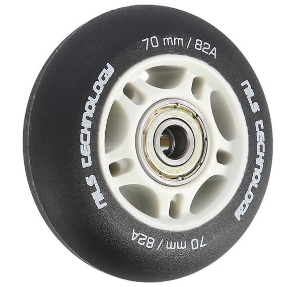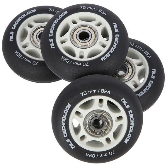 Kolečko PU ČERNÉ MATNÉ NILS EXTREME je vyrobeno z polyuretanu. Nejvýznamnějšími parametry koleček jsou tvrdost a průměr. Tvrdost koleček rozhoduje jak o komfortu jízdy, tak o přilnavosti k povrchu. Kolečko PU-82A zajišťuje dobrou amortizaci a vynikající adaptaci na jakýkoli povrch. Průměr koleček má přímý vliv na rychlost jízdy. Kolečko s větším průměrem umožňuje dosahovat vyšších rychlostí, avšak nezaručuje takovou manévrovatelnost jako kolečko s menším průměrem. Ložisko ABEC 9, vyrobené z vysoce kvalitní uhlíkové oceli, které zajišťuje vynikající tvrdost a odolnost. Vyznačuje se nejnižším odporem valení, což se promítá do nejvyšší rychlosti podle americké normy Annular Bearing Engineering Committee, zkráceně ABEC. Podstatným parametrem tohoto ložiska je excentricita, tedy kulatost na dráze vnitřního kroužku, a ta činí pouhých 0,0012 mm.
