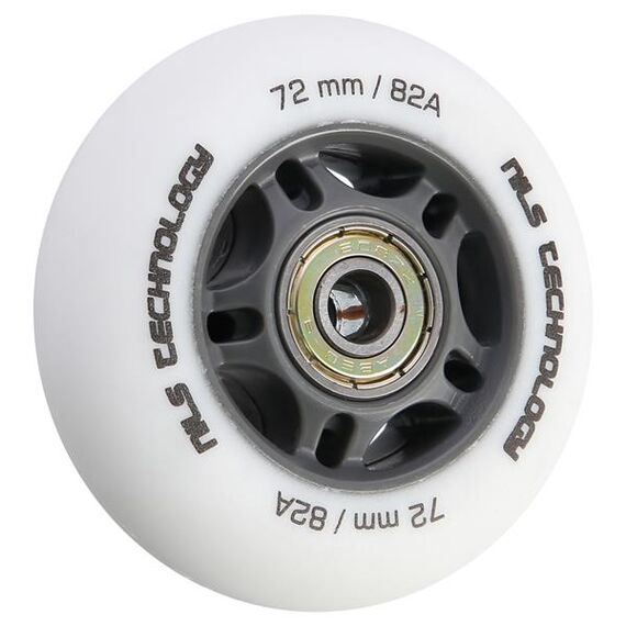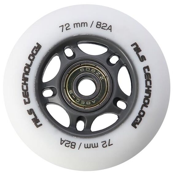 Kola PU BÍLÁ MATNÁ NILS EXTREME jsou vyrobena z polyuretanu. Nejvýznamnějšími parametry kol jsou tvrdost a průměr. Tvrdost kol rozhoduje jak o komfortu jízdy, tak o přilnavosti k povrchu. Kola PU-82A zajišťují dobrou amortizaci a vynikající adaptaci na jakýkoli povrch. Průměr kol má přímý vliv na rychlost jízdy. Kola s větším průměrem umožňují dosahovat vyšších rychlostí, avšak nezaručují takovou manévrovatelnost jako kola s menším průměrem. Ložisko ABEC 9, vyrobené z vysoce kvalitní uhlíkové oceli, které zajišťuje vynikající tvrdost a odolnost. Vyznačuje se nejnižším valivým odporem, což se promítá do nejvyšší rychlosti podle americké normy Annular Bearing Engineering Committee, zkráceně ABEC. Podstatným parametrem tohoto ložiska je excentricita, tedy kulatost na dráze vnitřního kroužku, a činí pouhých 0,0012 mm.