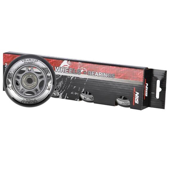 Kola PU ČERNÉ NILS EXTREME jsou vyrobena z polyuretanu. Nejvýznamnějšími parametry kol jsou tvrdost a průměr. Tvrdost kol rozhoduje jak o komfortu jízdy, tak o přilnavosti k povrchu. Kola PU-82A zajišťují dobrou amortizaci a vynikající adaptaci na jakýkoli povrch. Průměr kol má přímý vliv na rychlost jízdy. Kola s větším průměrem umožňují dosahovat vyšších rychlostí, avšak nezaručují takovou manévrovatelnost jako kola s menším průměrem. Ložisko ABEC 9, vyrobené z vysoce kvalitní uhlíkové oceli, které zajišťuje vynikající tvrdost a odolnost. Vyznačuje se nejnižším odporem valení, což se promítá do nejvyšší rychlosti podle americké normy Annular Bearing Engineering Committee, zkráceně ABEC. Podstatným parametrem tohoto ložiska je excentricita, tedy kulatost na dráze vnitřního kroužku, a ta činí pouhých 0,0012 mm.