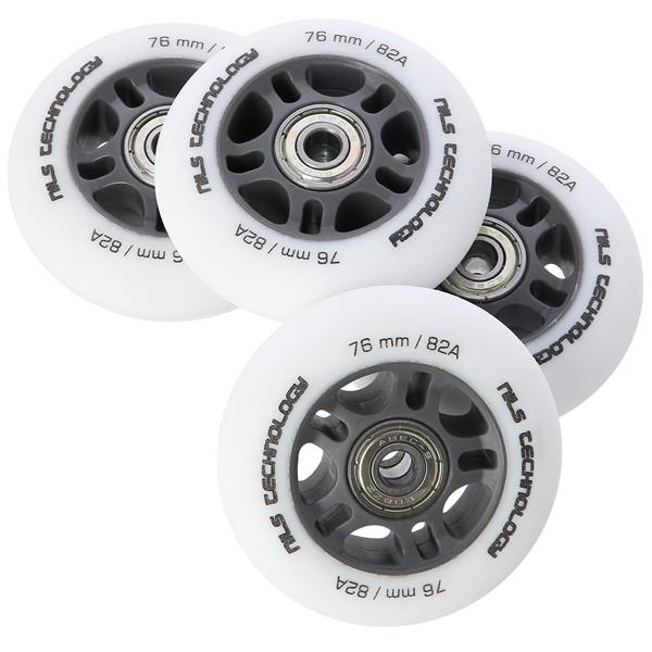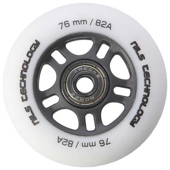 Kola PU BÍLÁ MATNÁ NILS EXTREME jsou vyrobena z polyuretanu. Nejvýznamnějšími parametry kol jsou tvrdost a průměr. Tvrdost kol rozhoduje jak o komfortu jízdy, tak o přilnavosti k povrchu. Kola PU-82A zajišťují dobrou amortizaci a vynikající adaptaci na jakýkoli povrch. Průměr kol má přímý vliv na rychlost jízdy. Kola s větším průměrem umožňují dosahovat vyšších rychlostí, avšak nezaručují takovou manévrovatelnost jako kola s menším průměrem. Ložisko ABEC 9, vyrobené z vysoce kvalitní uhlíkové oceli, které zajišťuje vynikající tvrdost a odolnost. Vyznačuje se nejnižším valivým odporem, což se promítá do nejvyšší rychlosti podle americké normy Annular Bearing Engineering Committee, zkráceně ABEC. Podstatným parametrem tohoto ložiska je excentricita, tedy kulatost na dráze vnitřního kroužku, a ta činí pouhých 0,0012 mm.