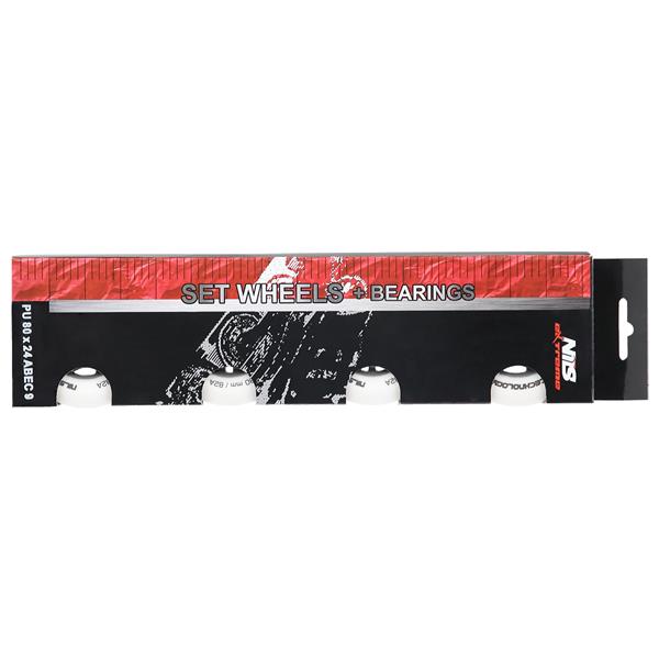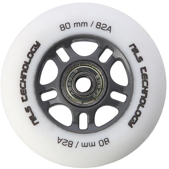 Kola PU BÍLÁ MATNÁ NILS EXTREME jsou vyrobena z polyuretanu. Nejvýznamnějšími parametry kol jsou tvrdost a průměr. Tvrdost kol rozhoduje jak o komfortu jízdy, tak o přilnavosti k povrchu. Kola PU-82A zajišťují dobrou amortizaci a vynikající adaptaci na jakýkoli povrch. Průměr kol má přímý vliv na rychlost jízdy. Kola s větším průměrem umožňují dosahovat vyšších rychlostí, avšak nezaručují takovou manévrovatelnost jako kola s menším průměrem. Ložisko ABEC 9, vyrobené z vysoce kvalitní uhlíkové oceli, které zajišťuje vynikající tvrdost a odolnost. Vyznačuje se nejnižším valivým odporem, což se promítá do nejvyšší rychlosti podle americké normy Annular Bearing Engineering Committee, zkráceně ABEC. Podstatným parametrem tohoto ložiska je excentricita, tedy kulatost na dráze vnitřního kroužku, a ta činí pouhých 0,0012 mm.