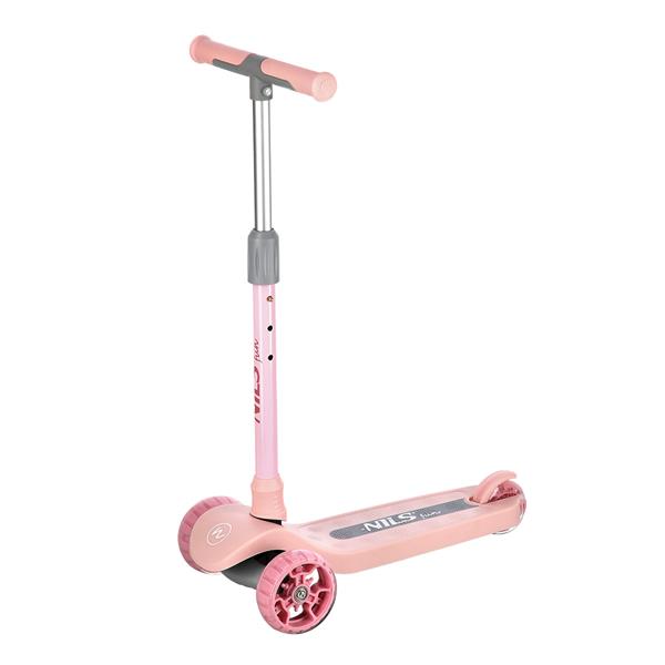 HLB02 značky NILS je tříkolová koloběžka, která je ideálním řešením pro nejmladší milovníky skatingu. Tři kola usnadňují učení jízdy na koloběžce a umožňují nabrat zkušenosti. HLB02 má intuitivní systém ovládání. Řídítka slouží především k udržení rovnováhy, a manévry provádíme, když se nakláníme a překlápíme řídítka na jednu nebo druhou stranu. Takové řešení se skvěle osvědčuje u nejmladších nadšenců jízdy. Díky nastavitelným řídítkům snadno přizpůsobíme vybavení výšce dítěte, což také umožňuje užívat si koloběžku po několik sezón. Koloběžka je vybavena nožní brzdou, která zvyšuje bezpečnost během jízdy, a vysoký komfort jízdy zajišťují ložiska třídy ABEC7. Další výhodou HLB02 jsou svítící kola LED. Poskytují spoustu radosti dětem, ale také zvyšují bezpečnost tím, že uživatel je více viditelný.