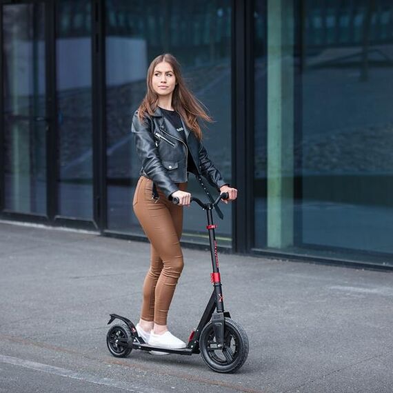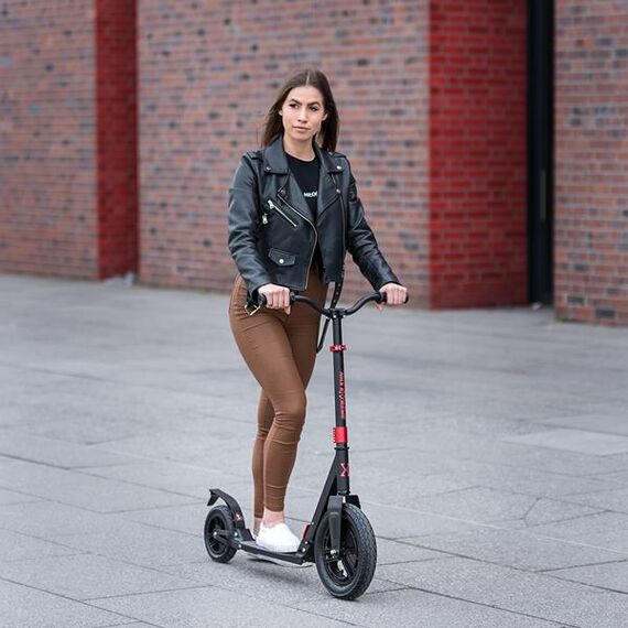 - Kolieska: Nafukovací kola o průměru předního 300 mm a zadního 200 mm a tvrdosti 82A, což zajišťuje vynikající přilnavost a komfort jak na asfaltu, tak v terénu.