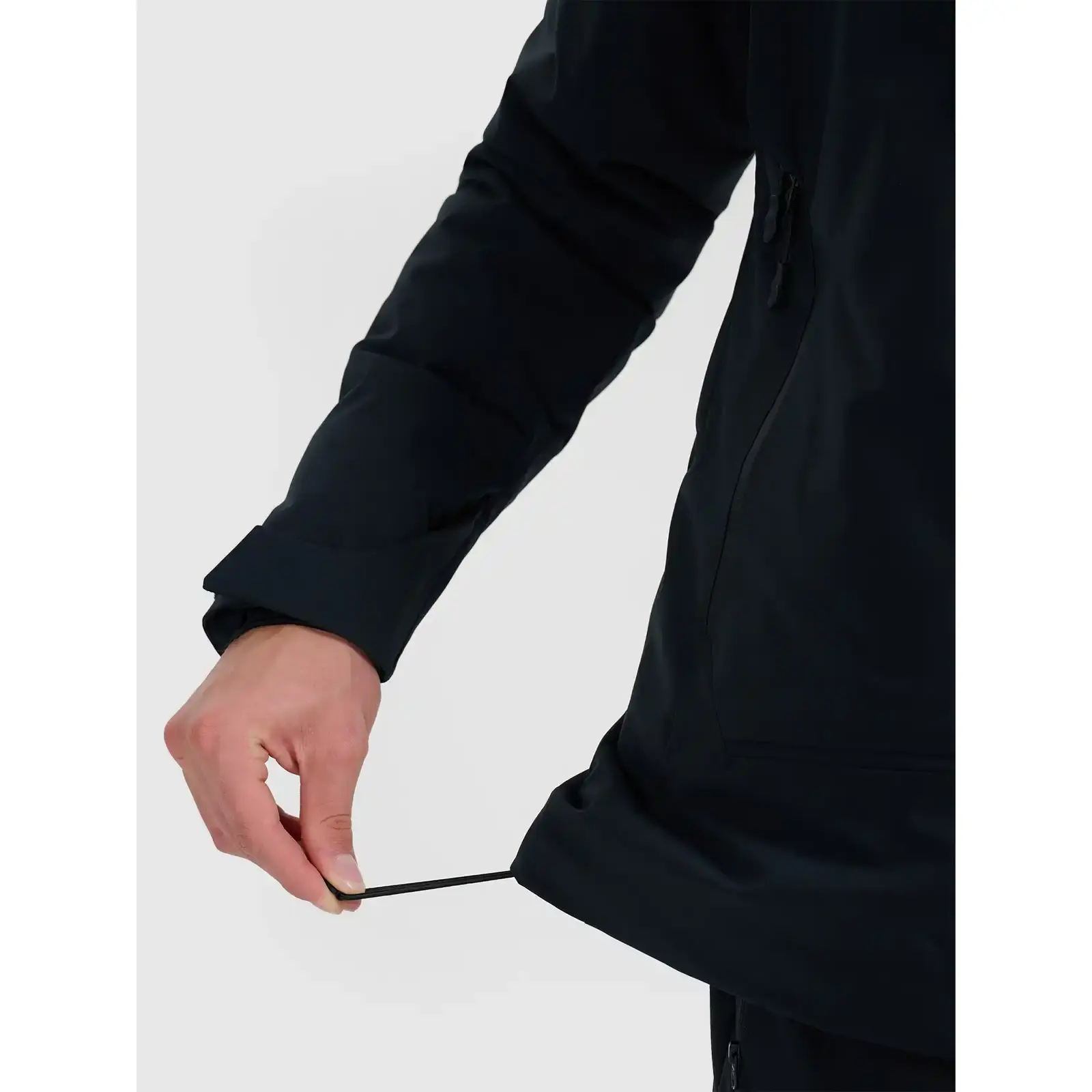 Projekt zohledňuje prvky zvyšující komfort používání: nastavitelná kapuce kompatibilní s helmou, vnitřní sněhová ochrana zabraňující pronikání sněhu, profilované rukávy zajišťující volnost pohybu a nastavitelné manžety a spodní část bundy pro lepší přizpůsobení. Další detaily zahrnují ventilace pod pažemi se zipy usnadňující regulaci teploty během intenzivního úsilí a praktické lyžařské kapsy, kapsu na skipas a vnitřní přepážky na drobnosti a elektronická zařízení.