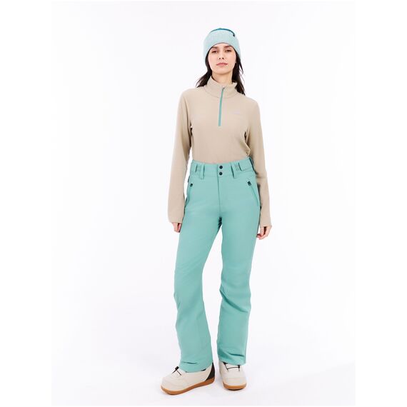 Hlavní materiál z 100% polyesteru s membránou bez PFC zajišťuje voděodolnost a prodyšnost. Kriticky lepené švy utěsňují spoje a elastický materiál slim fit umožňuje plnou volnost pohybu při zatáčení a skocích. Kalhoty se osvědčují na lyžařských a snowboardových svazích v mírně obtížných povětrnostních podmínkách.