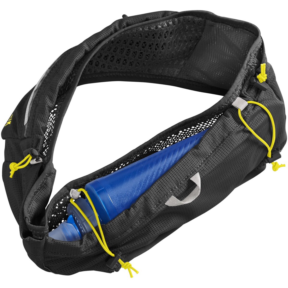 Pás Ultra Belt je vybaven dedikovanou kapsou na měkkou láhev Quick Stow™ o objemu 500 ml (včetně). Umožňuje rychlé hydratování bez nutnosti zastavování – nádobu lze pohodlně vyjmout a schovat zpět v pohybu. Kromě toho pás nabízí řadu elastických kapes, které umožňují bezpečné uložení energetických gelů, klíčů, telefonu nebo malých svačin.