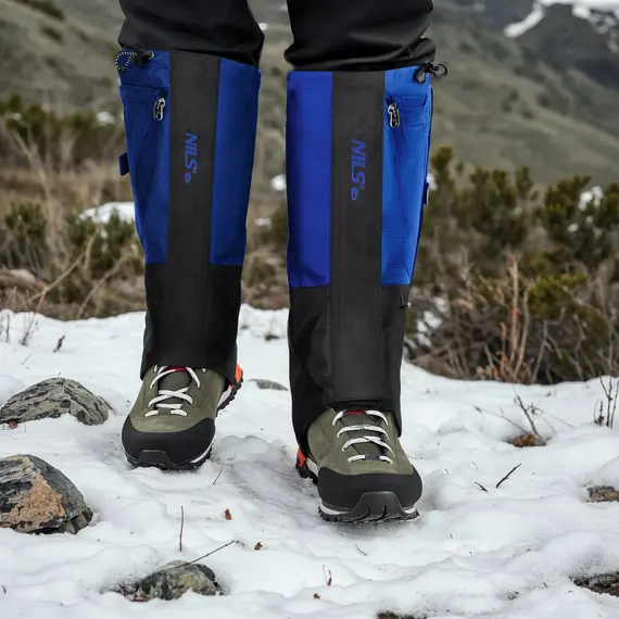 Návleky vyrobené z nylonu představují ochrannou bariéru mezi botou a vnějším prostředím. Výška 43,5 cm pokrývá většinu standardních trekkingových bot, poskytující ochranu kotníku a dolní části nohy. Systém zapínání na suchý zip umožňuje rychlé nasazení a sundání bez nutnosti svlékání obuvi. Dvě kapsy umožňují ukládání malých předmětů – mapy, kompasu nebo energetických tyčinek – bez nutnosti sahat do batohu. Produkt se osvědčuje zejména v zimních podmínkách, při trekkingu po sněhu a blátě a v horské turistice, kde je ochrana obuvi před vlhkostí a znečištěním klíčová.