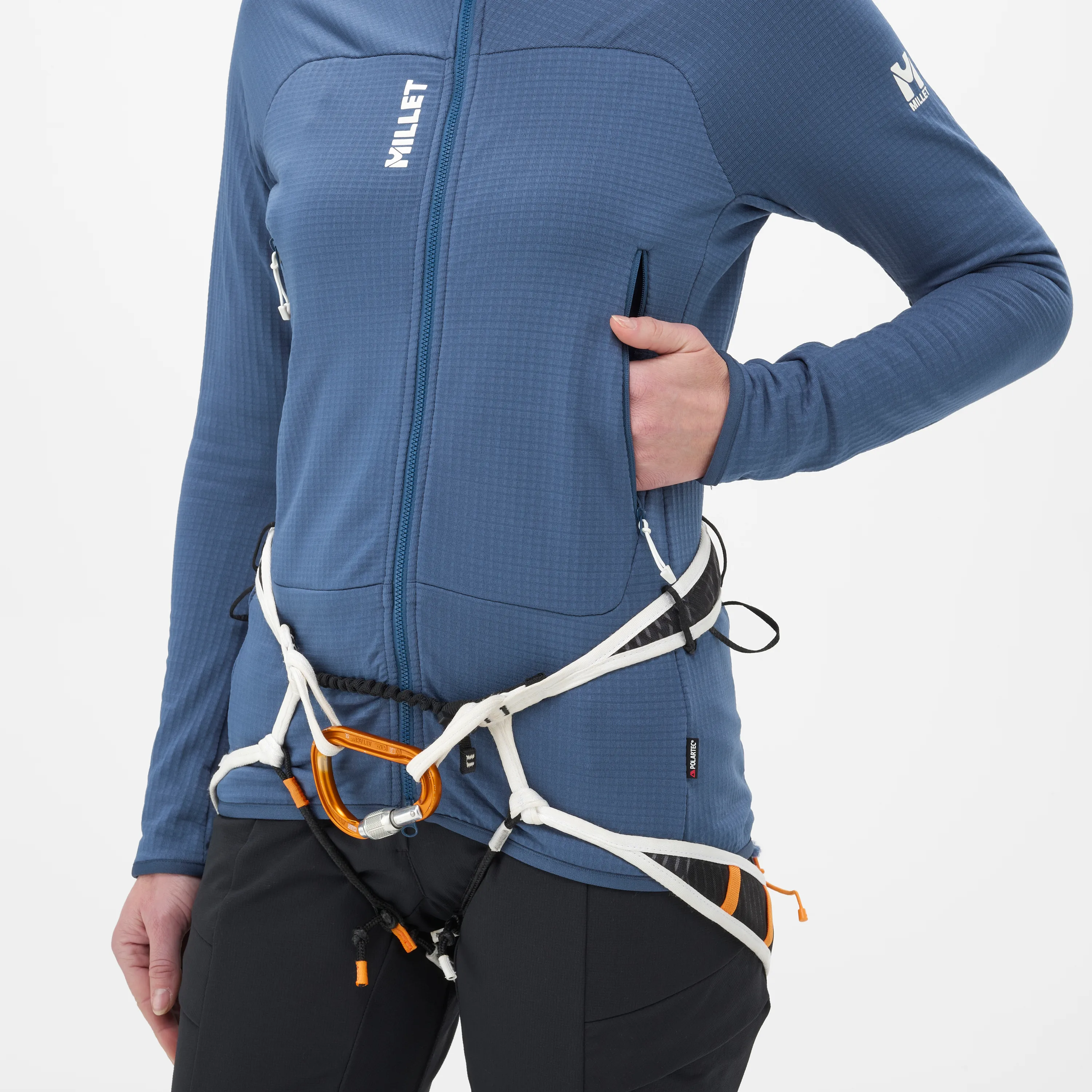 Mikina využívá technickou strukturu typu grid, která spojuje lehkost a vynikající tepelnou izolaci s vysokou prodyšností. Vnitřní, mřížkovaná plocha zadržuje vrstvu vzduchu pro lepší retenci tepla, zároveň umožňuje rychlé schnutí a efektivní odvod potu ven. Elastický střih a výřezy na místech odpovídajících pohybu zajišťují svobodu a pohodlí během dlouhých túr. Přiléhavá kapuce navíc chrání krk a hlavu před chladem, aniž by omezovala zorné pole.