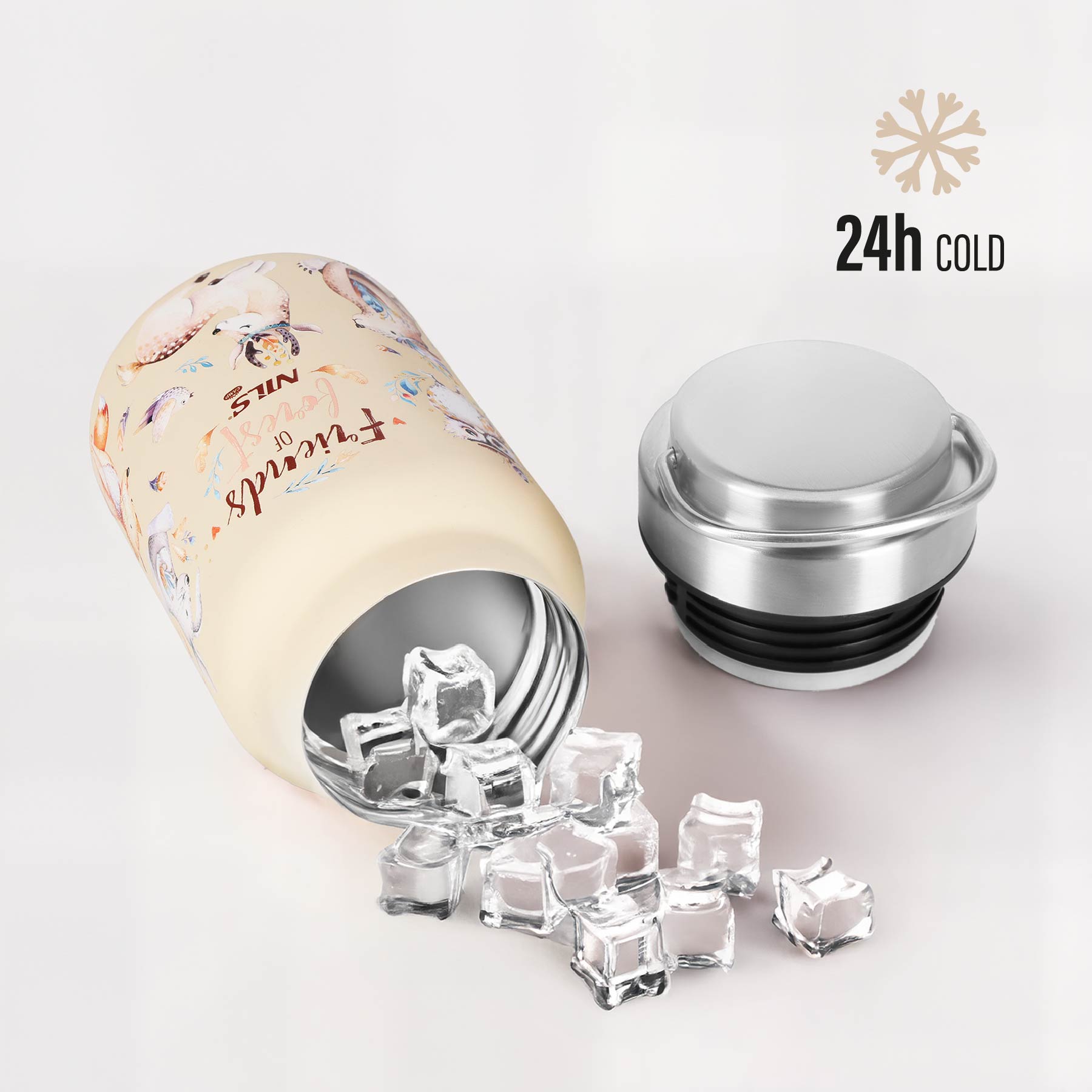 - Dlouhotrvající udržení teploty — studené nápoje zůstávají chladné až 24 hodin díky dvojitému izolačnímu plášti