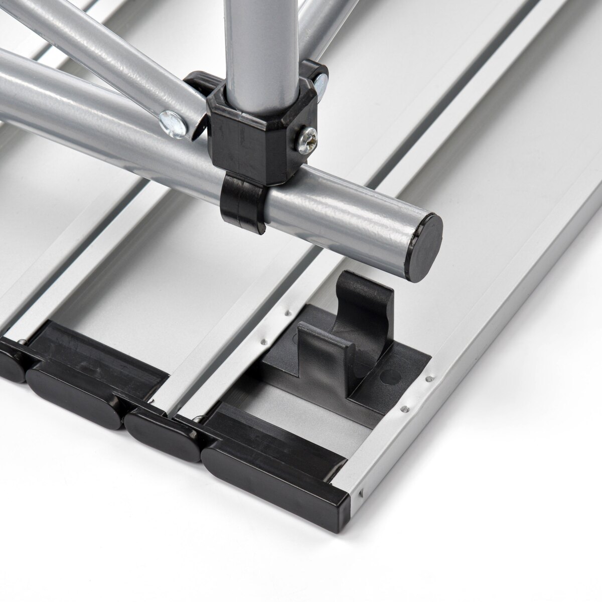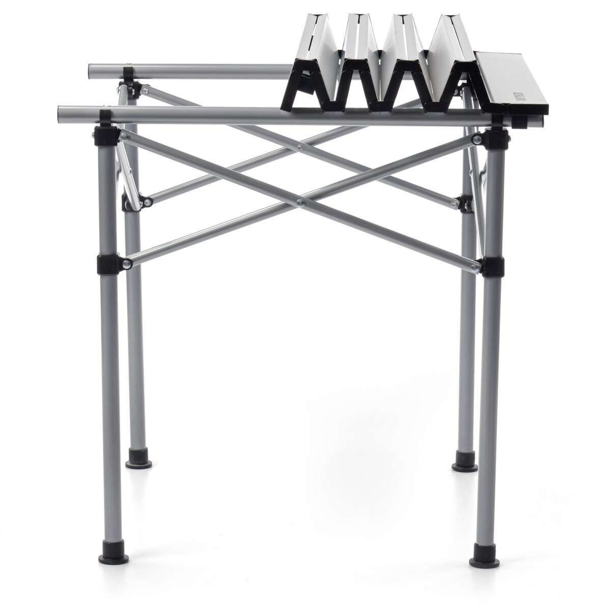 - Snadná montáž: Skládací deska z hliníkových prken spojených elastickou páskou umožňuje rychlou a jednoduchou montáž a demontáž bez potřeby použití nářadí.
