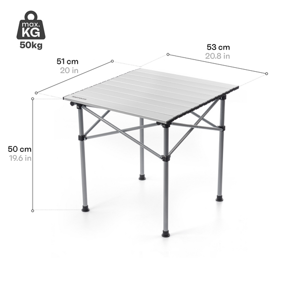 - Kompaktní rozměry: Po složení stůl zabírá málo místa a snadno se vejde do kufru auta, karavanu nebo batohu.