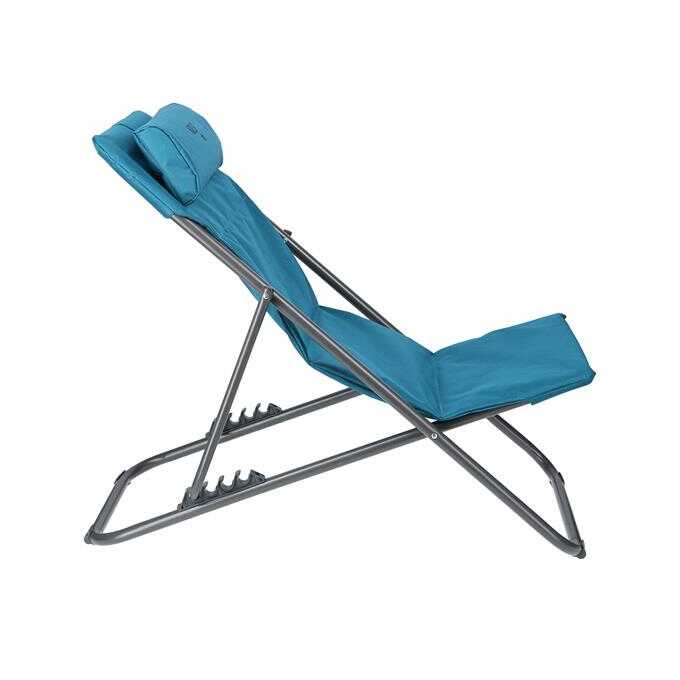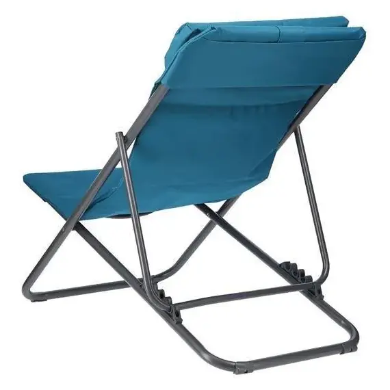 Konstrukce vyrobená z ocelových profilů o průměru 25 mm zajišťuje tuhost a trvanlivost. Sedák a opěradlo pokryté materiálem 600D Oxford s vrstvou polyetylenu — odolným proti vlhkosti a snadno čistitelným. Čtyřstupňová regulace opěradla umožňuje změnu polohy od ležení po pololežení, což činí ležák univerzálním pro různé situace — od relaxace po čtení. Protiskluzové nožičky zabraňují posouvání na trávě, betonu nebo dřevě.