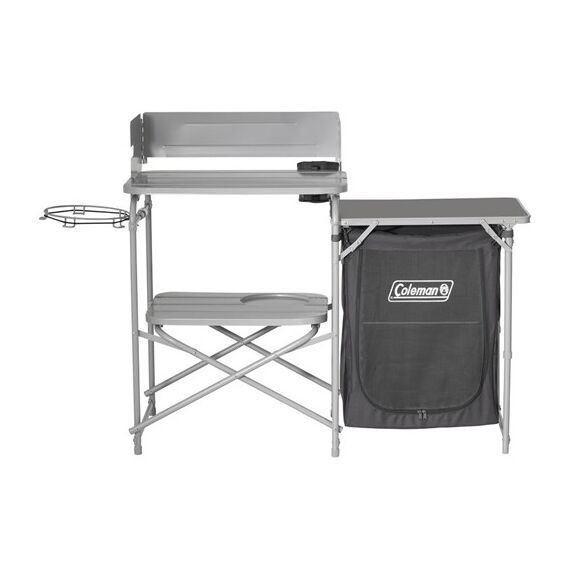 Praktický kempingový stolek Coleman Camp Cuisine Table se ideálně hodí k organizaci kuchyně během kempování a karavaningu. Poskytuje místo pro gastronomické vybavení, plynovou láhev a odpadky, což usnadňuje přípravu jídel na čerstvém vzduchu.