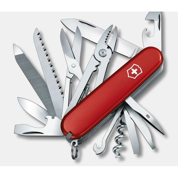 Victorinox Handyman 1.3773 je středně velký švýcarský nůž, který kombinuje 24 funkcí, což z něj činí nepostradatelné nářadí pro každého kutila. Díky kompaktním rozměrům a bohaté sadě nástrojů se hodí jak doma, tak na outdoorové výpravy.