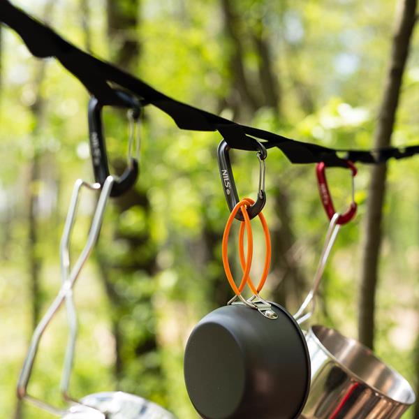 Doplňte linu karabinami NILS CAMP pro lepší upevnění těžších předmětů a rychlejší přístup k vybavení.