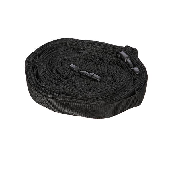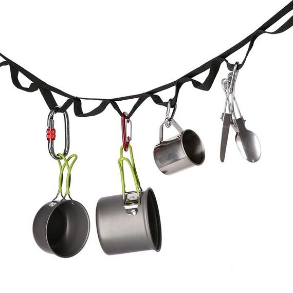 Lina vyrobená z odolného polyesteru o šířce 2,5 cm, s 19 kovovými kroužky pro karabiny nebo háčky. Délka 425 cm plus dva úseky po 90 cm umožňuje napnutí mezi podpěrami. Sponové uzávěry na obou stranách umožňují regulaci a rychlou montáž na tábořišti, pod tarpem nebo houpací sítí.