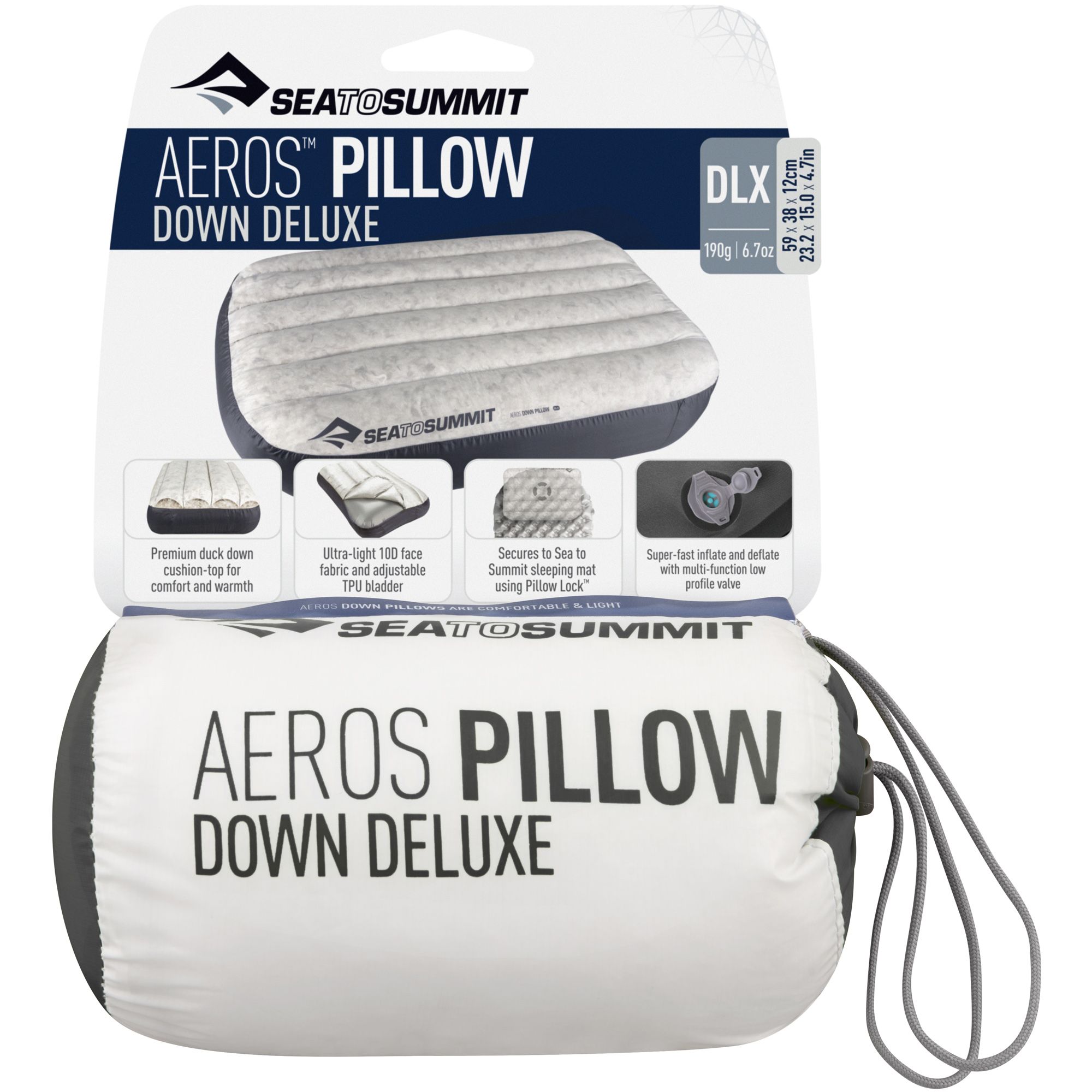 SEA TO SUMMIT Polštář Aeros Down Pillow Deluxe - komfort peří v cestování