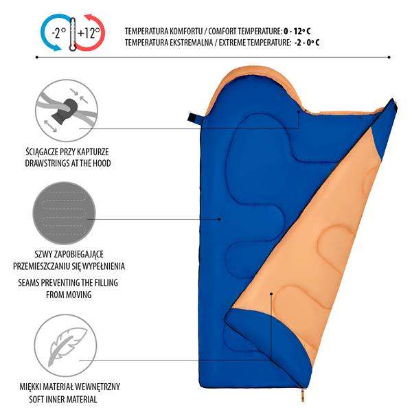 Se zaměřením na maximální komfort je spací pytel vybaven praktickými řešeními, jako je komora na nohy pro větší pohodlí, zdvojený materiál na nejvíce namáhaných místech nebo čalounění, které zajišťuje dodatečnou tepelnou izolaci. To vše dělá spací pytel NILS CAMP nezbytným prvkem výbavy každého malého objevitele.